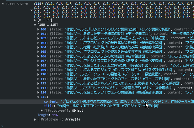 Unten ist ein spezifisches Beispiel für JavaScript-Code. Er erstellt ein Array von Objekten im Titel- und Inhaltsformat.